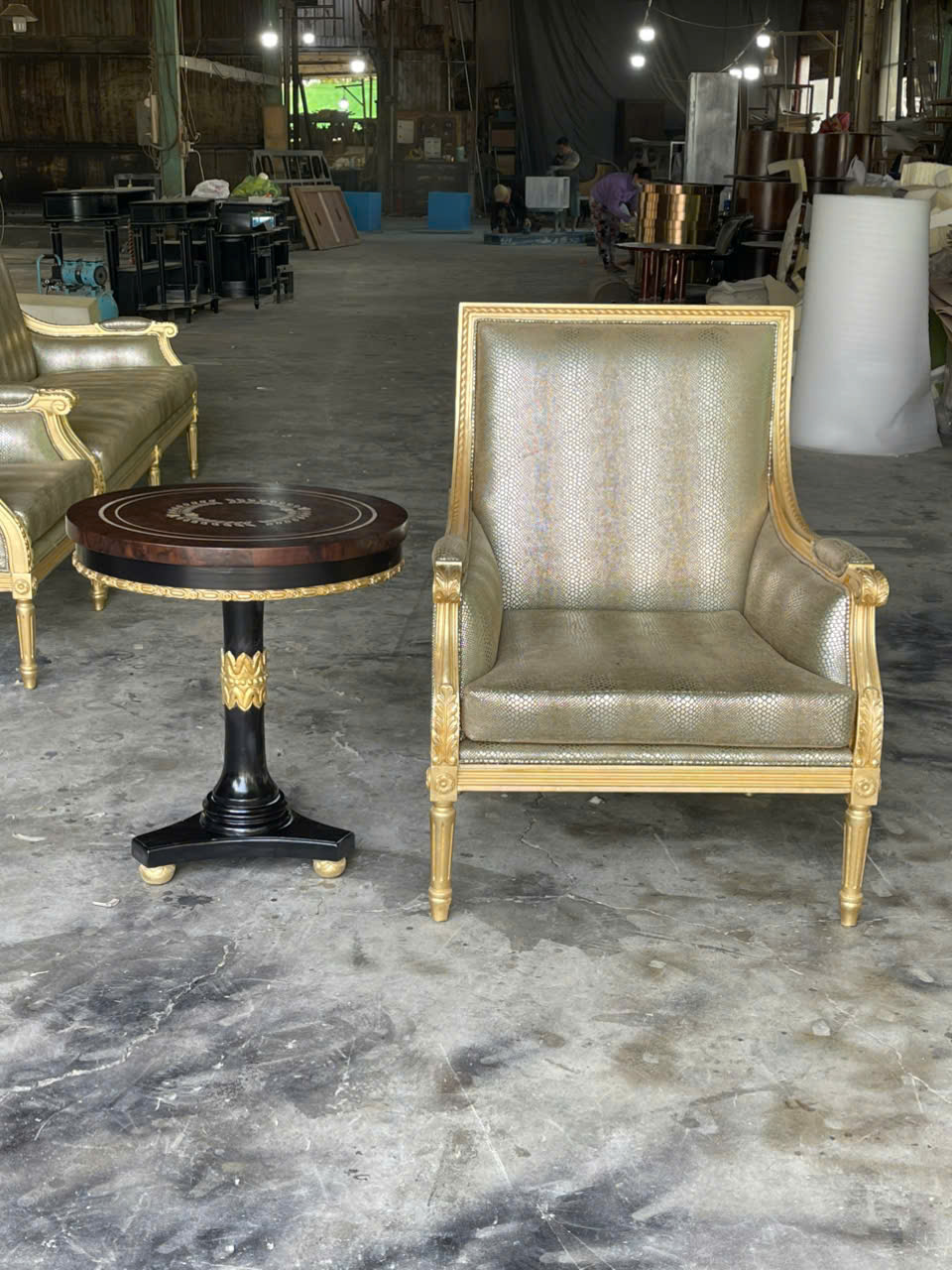 Bàn trà kết hợp cùng chiếc Armchair Louis 16 dát vàng Ý