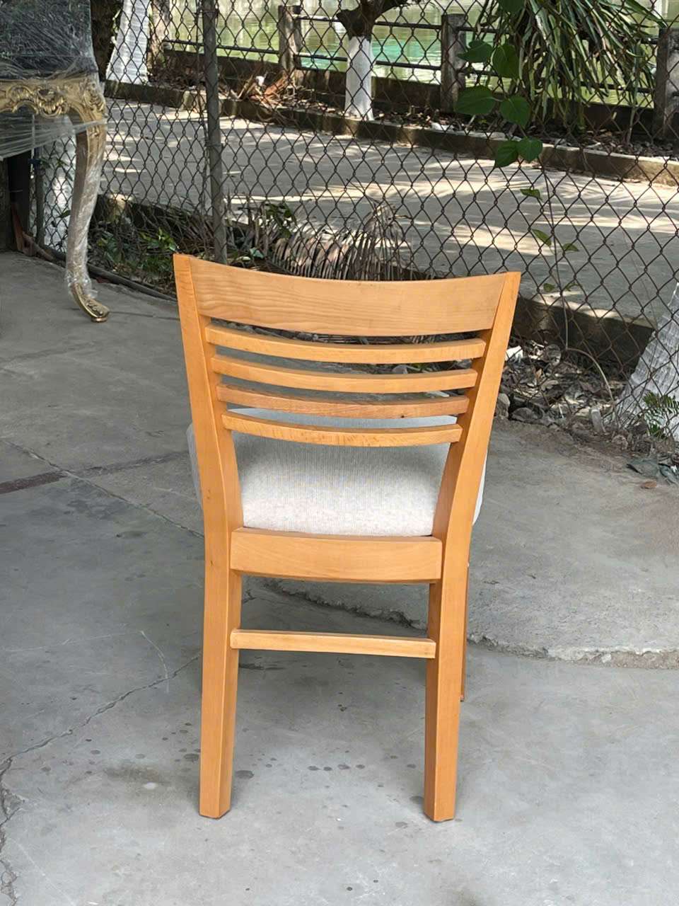 Ghế ăn hiện đại 4 nan gỗ dẻ dai sản hàng có sẵnChiếc ghế ăn hiện đại gỗ dẻ dai mang phong cách hiện đại với thiết kế tối giản nhưng tinh tế. Khung ghế được chế tác từ gỗ tự nhiên chắc chắn, bề mặt hoàn thiện màu nâu ấm áp giúp tôn lên vẻ đẹp mộc mạc nhưng vẫn sang trọng. Phần tựa lưng gồm các nan gỗ ngang được thiết kế cân đối, tạo cảm giác nhẹ nhàng và thoáng mắt, đồng thời mang lại sự nâng đỡ thoải mái cho lưng khi ngồi. Mặt ngồi được bọc nệm vải màu kem êm ái, giúp tăng sự thoải mái trong suốt bữa ăn hoặc khi ngồi lâu.